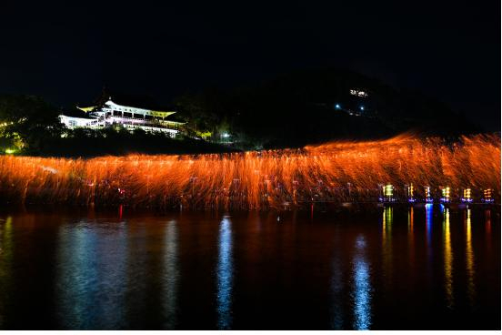 강 위에는 어화 돛단배의 은은한 불빛이 흐르며 수면을 따라 장관을 연출했고 이를 배경으로 펼쳐진 불꽃이 밤하늘을 수놓았다.