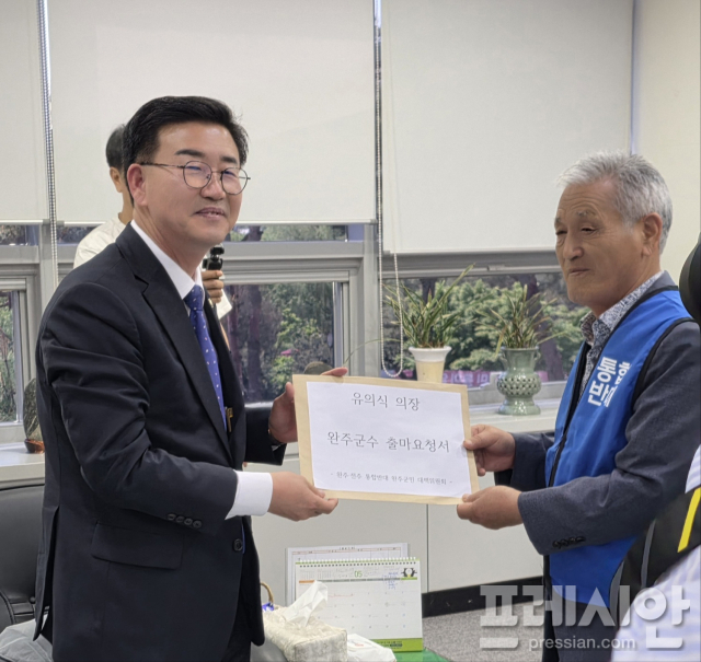 더불어민주당 전북 완주군수 후보가 확정된 이후, 완주·전주 통합에 반대하는 지역 단체가 유의식 완주군의회 의장에게 군수 출마를 공식 요청하고 나섰다. 유 의장은 출마 여부에 대해 “쉽게 결정할 사안이 아니다”며 신중한 입장을 밝혔다.