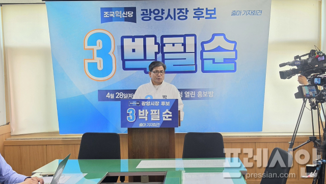 박필순 조국혁신당 전남 광양시장 후보가 28일 "전쟁과 경제 불확실성으로 어려워진 시민의 삶부터 챙기겠다"며 광양시장 출마를 공식 선언했다.