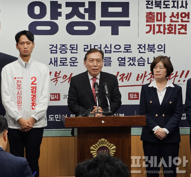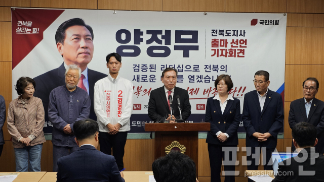 국민의힘 양정무 전북특별자치도지사 예비후보가 6·3 지방선거 출마를 공식화하며 전북 경제 회복과 청년 정착, 도정 투명성을 핵심 과제로 제시했다.