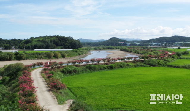 보성군 보성강변 일대 아름다운 배롱나무 꽃길이 주민들과 관광객들의 눈길을 끌고 있다.