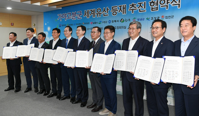 경상북도는 28일 경남도청 회의실에서 가야고분군 세계유산 등재 추진을 위해 문화재청, 경북도, 경남도, 전북도, 고령군, 남원시, 김해시, 함안군, 창녕군, 고성군, 합천군 간 ‘가야고분군 세계유산 등재 추진 협약’을 체결했다고 밝혔다.