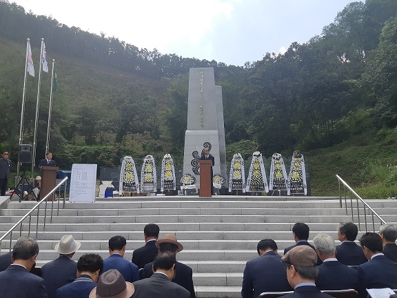 ▲한국전쟁 전·후 민간인희생자 청도군 유족회(회장 강삼순)는 지난 16일 매전면 덕산리 산141~6 곰티재 위령탑에서 제68주년 한국전쟁 전·후 민간인 희생자 합동 위령제를 개최했다. ⓒ청도군
