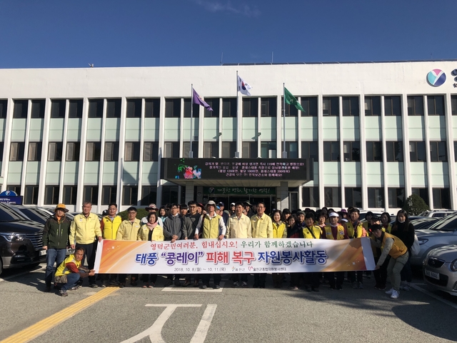 울진군은 지난 8일부터 11일까지 4일간 300여명의 지역 자원봉사단체 및 울진군공무원과 함께 태풍 ‘콩레이’로 큰 피해를 입은 영덕군 강구면 일대에서 수해 복구 봉사 활동을 하고 있다.