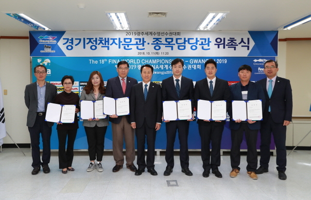 2019광주세계수영선수권대회 조직위원회(위원장 이용섭 광주광역시장, 이하 ‘조직위’)는 11일 오전 경기별 자문과 실무 역할을 맡아줄 경기정책자문관과 종목담당관들을 위촉하고 경기분야 대회준비를 본격화했다.