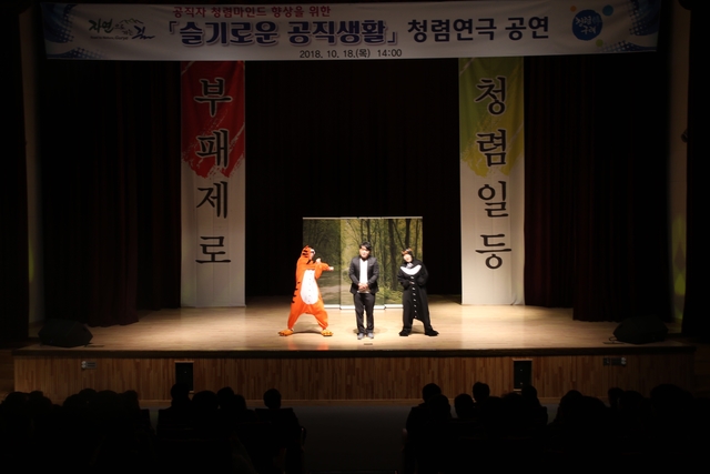 '슬기로운 공직생활'이란 주제로 펼쳐진 이번 연극은 과거부터 지속되어 오고 있는 부패와 비리의 연속성을 끊고 새로운 변화와 혁신의 조직문화를 만들어간다는 내용으로 5개의 에피소드로 진행됐다.