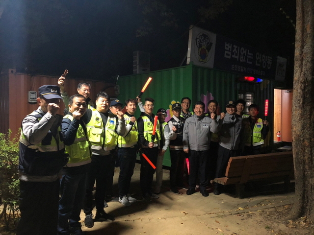 순천경찰서 연향파출소에서 지난 30일 연향자율방범대원들과 간담회를 실시하고 온·오프라인 탄력순찰 지점에 대해 동행순찰을 전개했다.