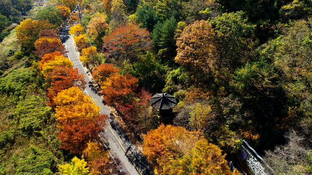 만추의 계절 11월에 접어들며 충북옥천군군서면 장령산자연휴양림의 화려한 단풍이 절정에 달해 고운 빛깔을 뽐내고 있다.