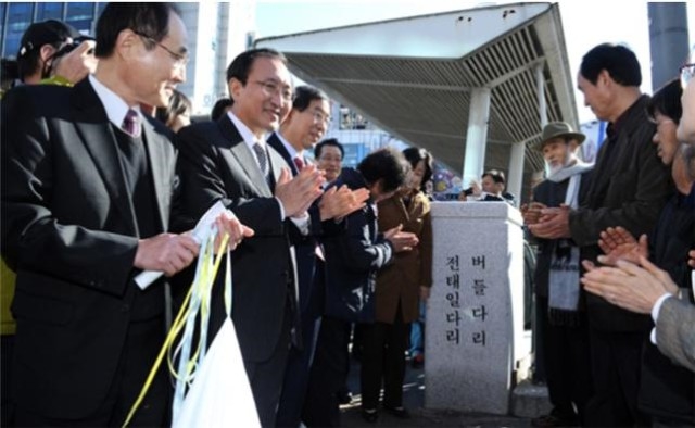 2005년 12월호 <신동아>는 송년특집으로 '2005년, 내가 가장 행복했던 순간'을 묻는다. 노회찬은 '청계천 버들다리에서 전태일을 다시 만난' 11월 12일 토요일의 '전태일다리'와 '전태일거리' 준공식 순간을 꼽는다. 그리곤 이렇게 말한다.