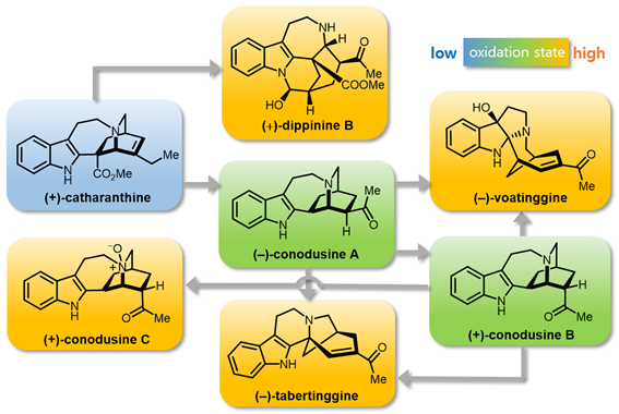 산화와 재배열을 통해 카타란틴의 구조를 변형시켜 고부가가치의 포스트이보가 천연물을 효율적으로 합성했다.