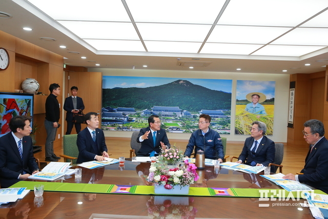 이번 면담은 후포 국제마리나항만 개발사업, 국립해양과학교육관 건립, 울진(원남)골프장 조성, 오산종합리조트 단지 조성 등 울진군에서 추진 중인 핵심투자사업의 진행과 필요한 사항에 대해서 설명하고 경북도의 적극적인 투자유치를 요청하기 위해 마련됐다.