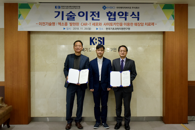 한국기초과학지원연구원(원장 이광식)은 생물재난연구팀 장익순, 최종순, 권요셉 박사팀이 개발한 ‘엑소좀(Exosome)이 포함된 CAR-T 세포를 이용한 췌장암 치료제 기술을 IAH 바이오(주)에 이전했다.