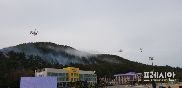 훈련에 직접 참여한 윤종진 경북도 행정부지사는 “올해 가을철 산불조심기간에 치러지는 이번 훈련은 그 동안의 산불재난 대응태세를 점검하고 개선방안을 마련할 수 있는 좋은 기회”라며“이번 산불진화 시범훈련을 계기로 유관기관 간의 공조와 협업체계를 구축해 최근 대형화 추세인 산불에 즉각적이고 효과적으로 대응해 나가겠다”고 밝혔다.