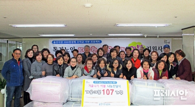 이번 전달식은 지난 11월 10일 울진시장에서 진행된 경매 행사를 통해 모금된 수익금 전액 (237만원 상당)으로 이불을 구매해 지역 내 독거어르신들에게 기부하는 행사였다.