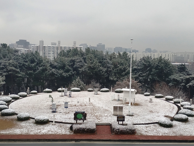 ▲ 대전지방기상청 측후시설에 내린 첫 눈 ⓒ대전지방기상청