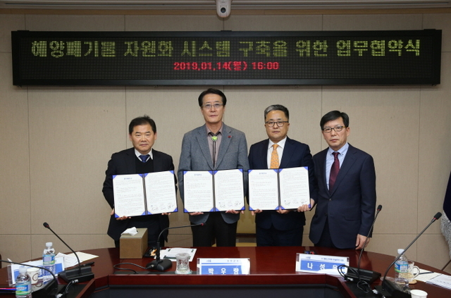 신안군(군수 박우량)은 지난 14일에 (주)웨이스트에너지솔루션, 고구려대학 산학협력단과 함께 저온열분해를 이용한 폐기물 유류화 기술을 통한 해양폐기물 일괄처리 시스템 시범화 사업을 위한 MOU를 체결했다고 밝혔다.