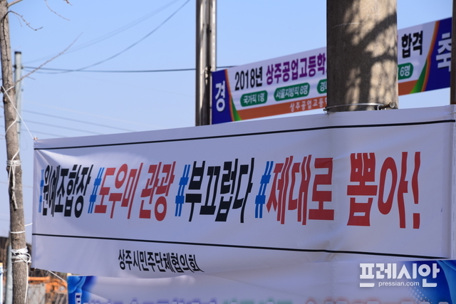▲ 상주시 민주단체 플래카드ⓒ박종근 기자