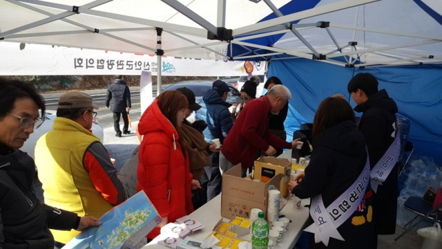 신안군관광협의회는 지난 설 명절 연휴(2.1∼2.7)기간 동안 임시 개통된 천사대교에서 황금돼지해를 맞이하여 출향 향우민들과 관광객 맞이 건강 기원 사랑의 차(茶) 나눔 봉사를 펼쳤다고 밝혔다.