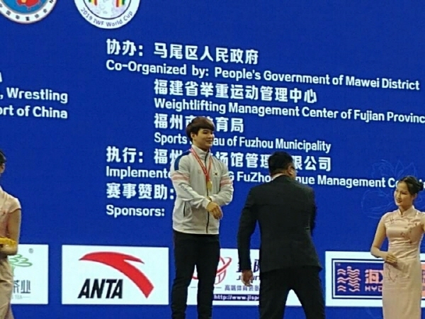진안군에 따르면 유동주 선수는 27일 85kg급에 출전해 세계적인 선수들을 모두 꺾고 인상과 용상, 합계에서 금메달을 목에 걸었다.
