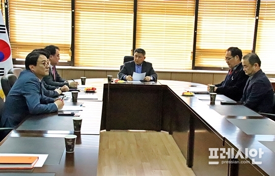 ▲장석춘 한국당 경북도당 위원장이 8일 훌라 도박으로 경찰에 입건된 김희수 경북도의원에 대한 윤리위원회를 진행하고 있다. ⓒ김덕엽 기자