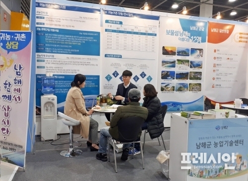 경남 남해군이 지난 21일부터 23일까지 서울시 aT센터에서 열리는 ‘2019 성공귀농·행복귀어 박람회’에 참가해 열띤 홍보활동을 펼치고 있다.