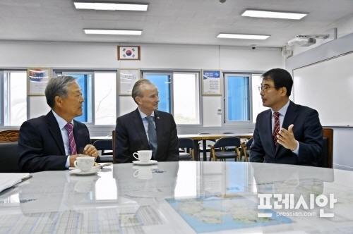 장충남 남해군수가 슈테판 아우어 주한 독일대사를 접견하고 독일마을 맥주축제 등 공동 관심사를 논의했다.