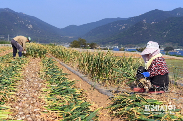 [포토뉴스] 해풍 먹은 보물섬 남해마늘 수확
