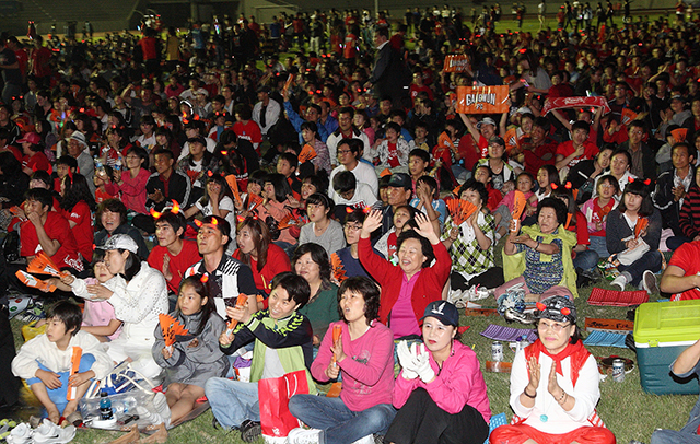 지난 12일 새벽 진행된 에콰도르와의 준결승전 시민참여 응원 이벤트에도 쌀쌀한 날씨임에도 불구하고 시민 200여 명이 종합경기장 내 대형전광판을 통해 함께 응원을 펼쳤다.