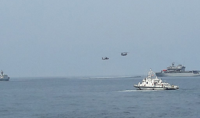 또 동해해양경찰도 지난 18일 낮 12시 45분부터 동해 동방 3해리 해상에서 해공군 합동 대규모 해상조난자 합동 탐색구조훈련을 실시했다는 보도자료를 내보냈다.