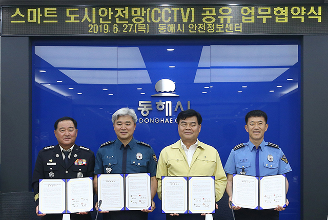 이런 스마트 도시안전망 CCTV 긴급영상 공유를 바탕으로 동해시는 긴급대응기관은 재난 및 사건·사고, 범죄로부터 안전한 도시환경 조성과 지역사회 발전을 위해 공동으로 노력해 나가기 위해 업무 협약을 맺었다.