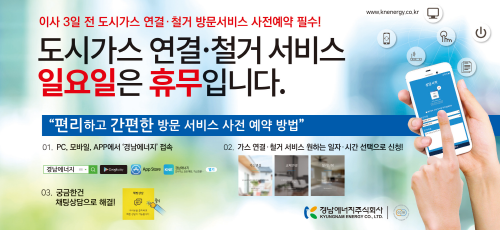 도시가스 '연결과 철거 서비스' 신청을 원하는 고객은 경남에너지 홈페이지와 APP을 통해 24시간 사전 신청할 수 있다.