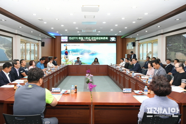 경남 남해군이 9일 군청회의실에서 민선7기 1주년을 맞아 농어업인, 청년, 장애인, 다문화가정, 귀농귀촌인 등 각계각층의 다양한 군민들과 함께 군민공감 토론회를 개최했다.