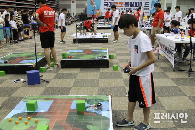 ▲국제로봇올림피아드 한국대회에 출전한 학생이 열심히 로봇을 조종하고 있다.ⓒ대구시