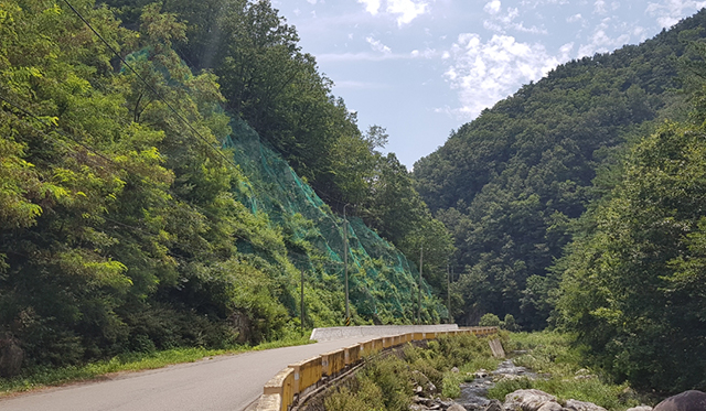 또 비천 마을 진입로 구간은 3억 원의 특별교부세를 투입해 전체 2킬로미터 구간 중 급경사지로 인한 낙석 및 사면붕괴 위험구간 700미터에 대해 낙석 방지시설 600미터, 낙석 방지망 2200평방미터 설치를 완료했다.