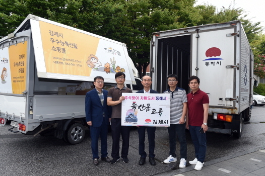 추석 명절을 맞이해 김제시에서는 지역 특산품인 지평선쌀 등 11개 품목을, 동해시에서는 건오징어 등 15개 품목을 선정해 상호 판매를 실시했다.
