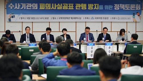 토론회가 열리기 전인 이날 오전 조국 법무부 장관은 검찰의 피의사실 공표 방지 강화를 위한 공보준칙 개정과 관련해 "박상기 전임 장관 때부터 추진한 내용"이라며 가족 논란을 의식한 듯 "관계기관의 폭넓은 의견 수렴을 거치고 제 가족 수사가 마무리된 후에 시행하겠다"고 밝혔다.