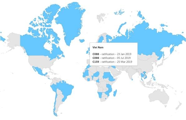 오래된 협약을 비준한 국가로는 베트남이 유일하다. 특히 베트남은 한국 정부가 비준하지 않고 있는 결사의 자유 98호 협약을 비롯해 3개의 협약을 비준했다. ILO가 매일 업데이트 하고 있는 캠페인에 동참한 나라들의 현황 지도를 보면, 아프리카와 중남미, 유라시아 대륙이 푸르게 되어 있는 반면 극동아시아에 위치한 한반도는 캠페인에 불참하고 있다.
