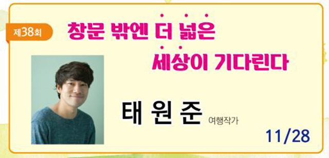 태원준 여행작가는 이날 ‘창문 밖엔 더 넓은 세상이 기다린다’를 주제로 강연에 나설 예정이다.