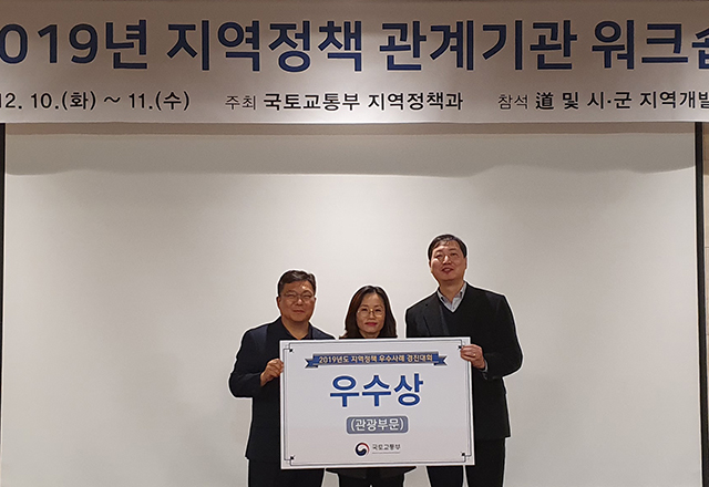 시 관계자는 “이번 수상을 통해 내년도 각종 공모사업 응모 시 가산점을 얻게 돼 국비확보에도 청신호가 켜졌다”며 “열악한 지방재정에 힘을 불어넣을 수 있는 계기가 마련된 셈”이라고 밝혔다.