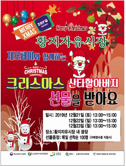 크리스마스를 앞두고 ‘제로페이와 함께하는 크리스마스’ 이벤트 행사가 오는 21일부터 23일까지 강원 태백시 황지자유시장 광장에서 열린다.