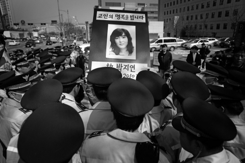 3일장을 치른 고 박 씨는 성남 화장터로 옮겨져 한 줌의 재로 남았지만 그의 사진을 들고 삼성 본관까지 이동하려던 행렬은 경찰에 가로막히기도 했다. 그의 마지막 가는 길을 사진으로 담았다.