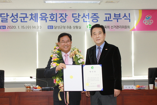 이 당선자는 15일 달성군체육회 선관위로부터 당선증을 교부받았다. 임기는 오는 16일부터 2023년 2월까지이며, 3년간 지역체육회를 이끌게 된다.