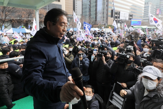 박 시장은 "이 비상한 상황, 중차대한 상황에서 이런 대규모 집회 참석하는 게 나 혼자만의 문제가 아니"라며 "그래서 지금 감염병 전문가들이 입을 모아서 서로가 서로를 보호하는 차원에서도 사회적 거리 두기를 해야 된다"고 하지 않느냐고 지적했다.