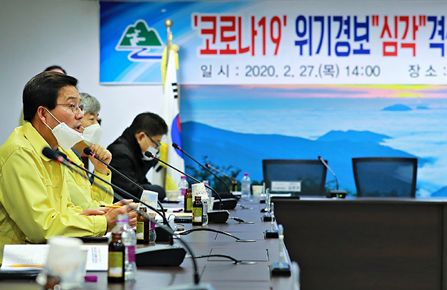 강원 태백시(시장 류태호)는 코로나19가 위기경보단계 ‘심각’ 격상 등 중대 고비를 맞고 있는 데 따라, 27일 시청 소회의실에서 관계기관 긴급대책회의를 개최했다.