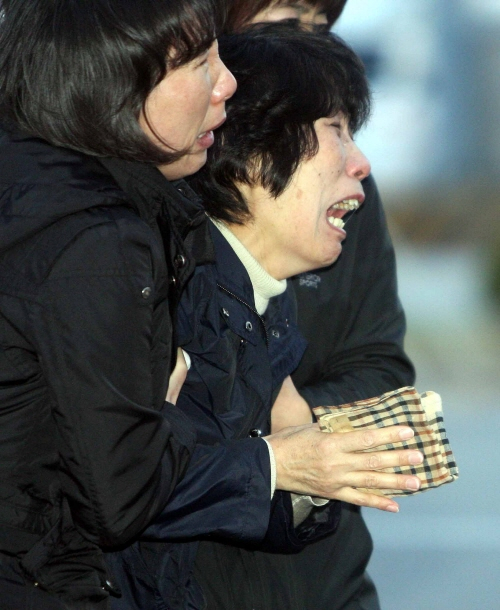 | ▲ "왜 이렇게 돌아왔어..!" 천안함 실종자 가족들이 대기하고 있는 평택 2함대 사령부로 실종 장병들의 시신이 도착하자 한 유가족이 애끓는 슬픔을 이기지 못해 오열하고 있다. ⓒ연합뉴스 |