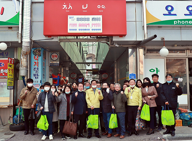 현장에서 상인들의 애로사항을 청취한 류태호 시장은 “코로나 19 위기극복을 위해 공직자부터 ‘시장 및 상점가 1인 1물품 팔아주기’와 ‘지역 내 식당 이용하기’ 등을 실천할 것”을 주문했다.