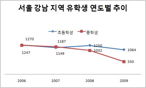 | ▲서울 강남 지역의 유학생 수는 지난 4년 동안 감소하는 추세를 보였다 ⓒ교육개발원 |