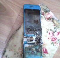 | ▲ 폭발로 추정되는 사고가 생긴 휴대폰. ⓒ프레시안 |