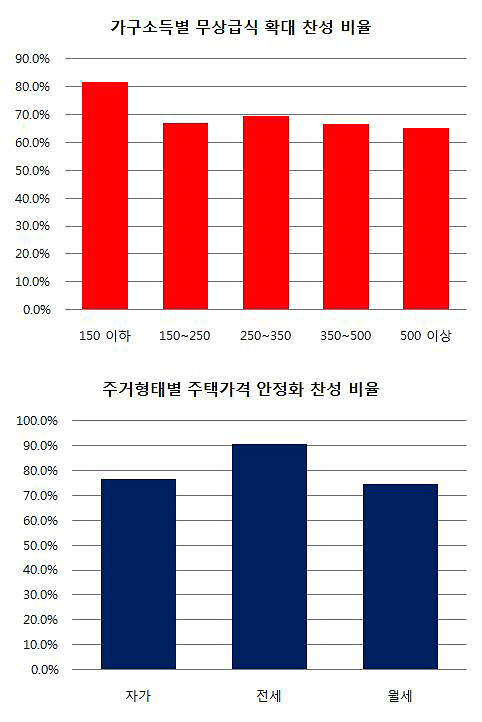 자가주택 거주자는 주택가격안정, 고소득자는 무상복지 확대 바라