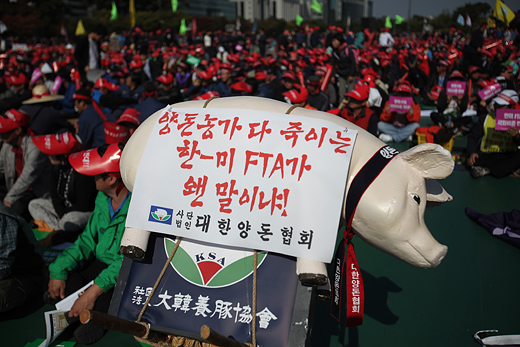 | ▲지난 10월 6일 농민들이 한미 FTA에 반대하는 집회를 열었다. ⓒ프레시안(최형락) |